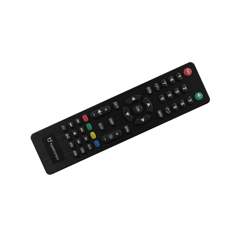Mithilfe der vorprogrammierten Tasten lassen sich Lautstärke, Helligkeit und Quelle einstellen. Beetronics empfiehlt das Einrichten der Monitore per Fernbedienung, welche aus bis zu 6 Meter Abstand funktioniert. Die RMC1 wird mit 2 AAA-Batterien betrieben.